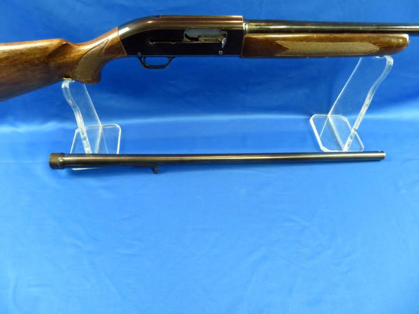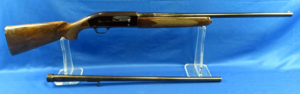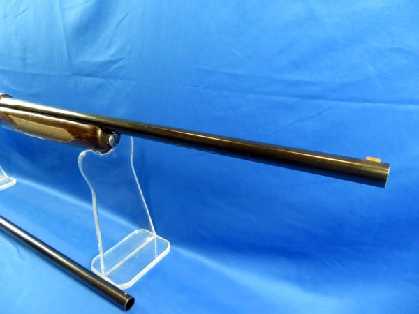 26" round Bbl.: bluing has a few minor spots of thinning; finish on wood is worn; CC; 2.75" chamber; extra barrel is 27", CC & 2.75" chamber; SN#199607A