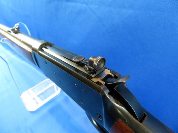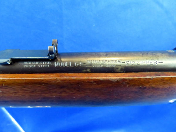 The Rarest of all calibers to find in the Mdl.64, seldom seen! 26" round Bbl.; bluing on barrel is starting to thin; smooth action; wood is solid w/some minor field dings; bolt peep sight is original factory to gun; condition may not be perfect, but you'll drive your wheels off looking for another Zipper! SN#1377780