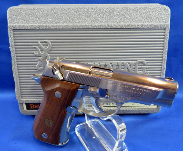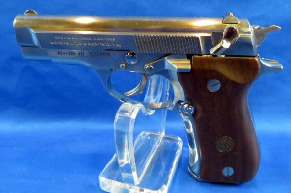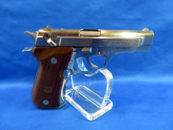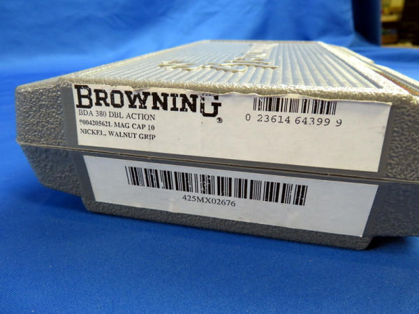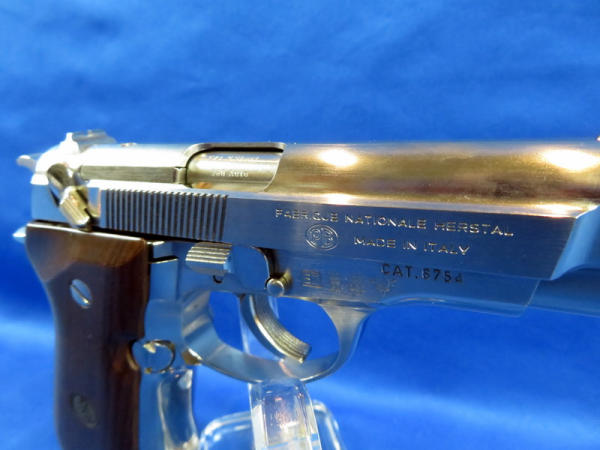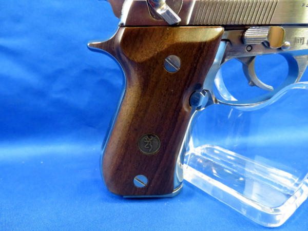 includes factory hard case; 4" barrel; walnut factory grips; marked Fabrique Nationale made in Italy on slide; has 5-clips total; also has extra .380 Blued Barrel; has not been used much, like new condition and a hard pistol to find! SN#MX02676