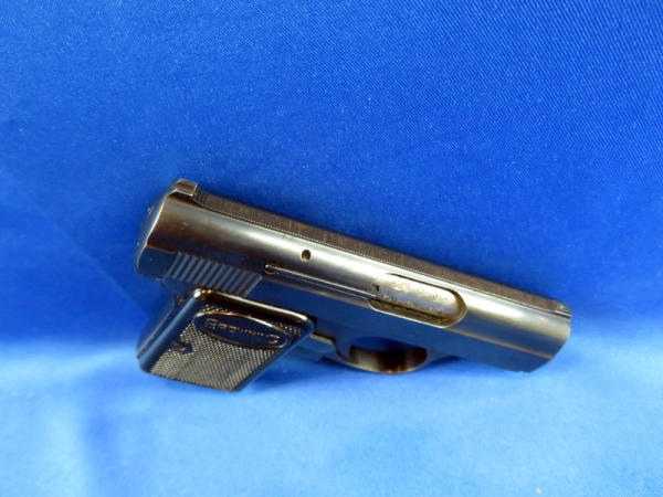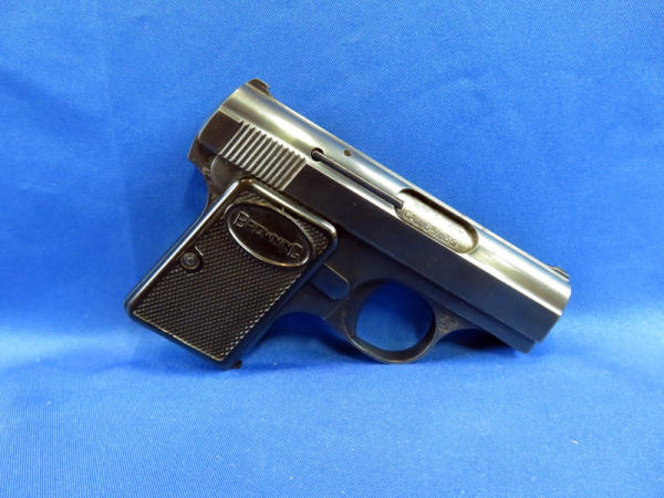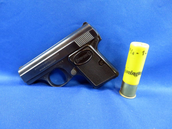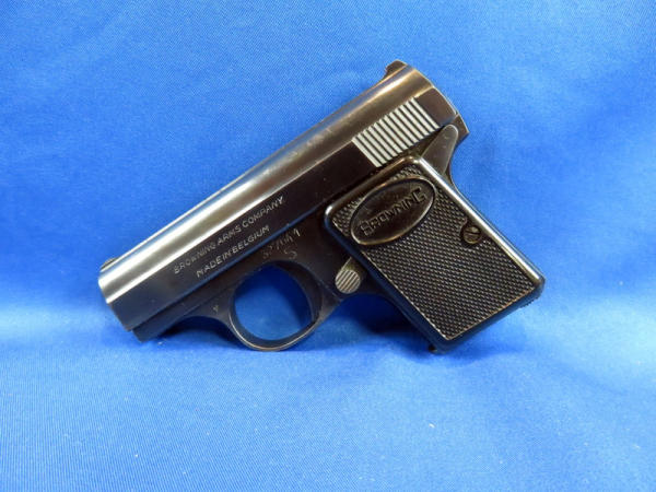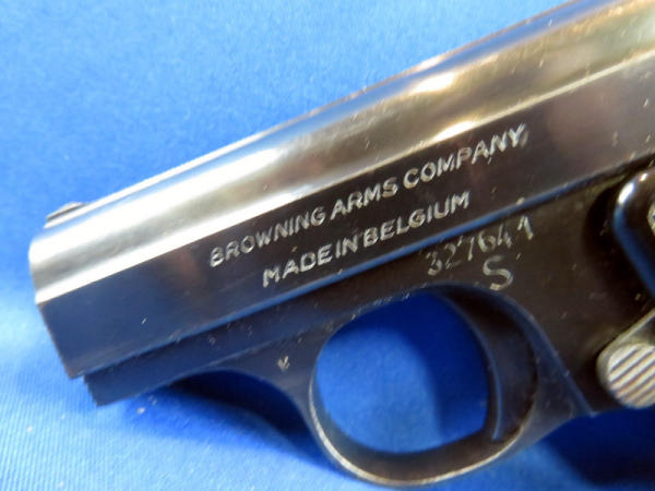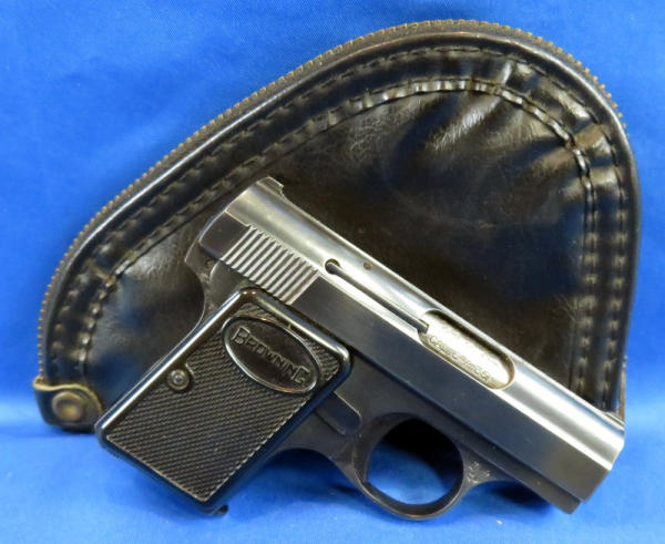 2" stainless barrel; nice original blued finish w/hard plastic checkered grips marked "Browning"; has zippered padded case; 2-clips; SN#327641