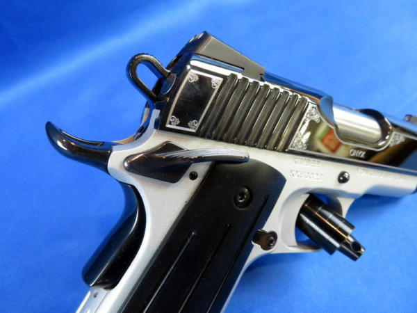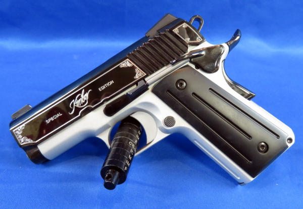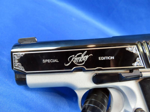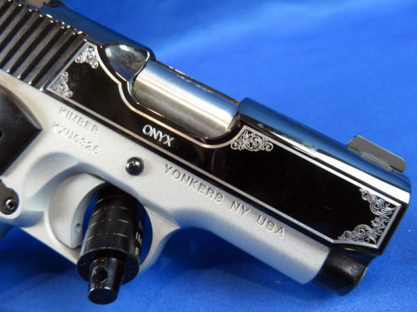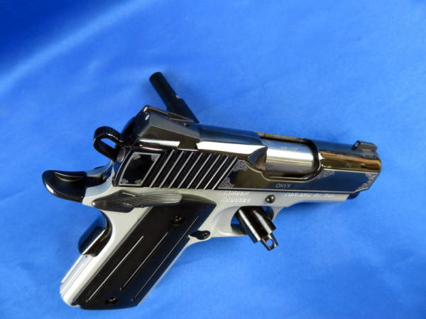 3" stainless barrel; beautiful bright finish on the slide w/fancy engraving; one clip; wonderful looking firearm; SN#KXU0326