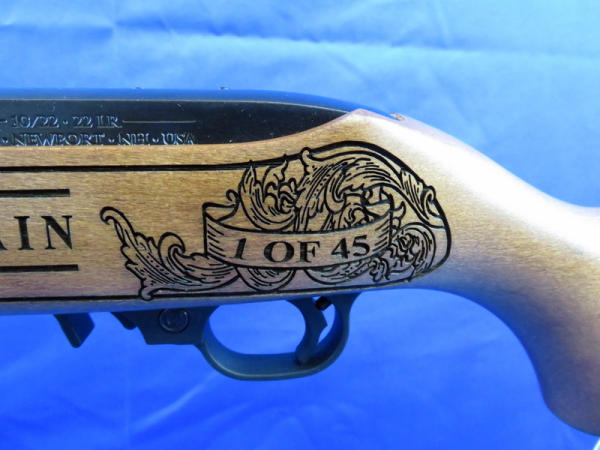 #1 of 45 made; nicely engraved wood stock; mint & unfired; 18.5" Bbl.; SN#0009-59634
