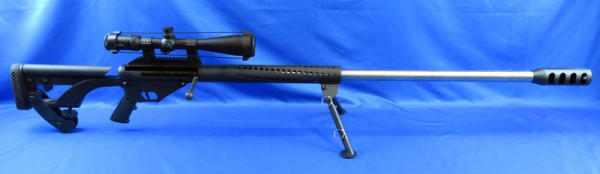 new condition, mint! Extremely heavy; 36" stainless barrel w/a 5" muzzle break; smooth action; bipod; Vortex Viper HS-T 6-24x50 high quality scope w/the box; made in St. Cloud, FL; SN#0281