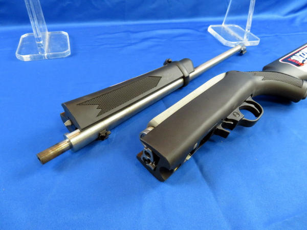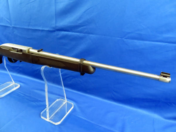 has factory carry case; black synthetic stock; 18.5" stainless barrel; does have some tarnish on barrel; SN#828-16300