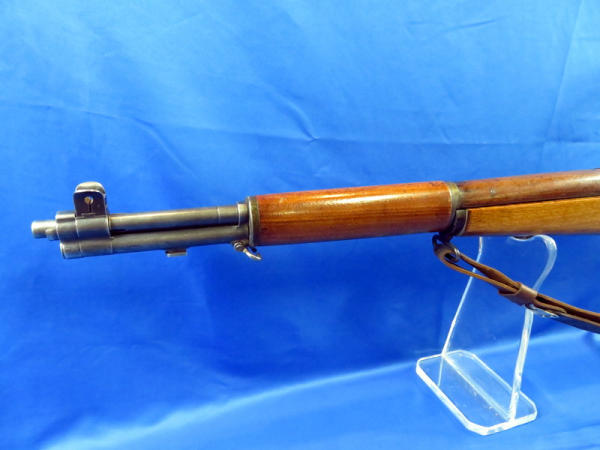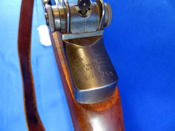 WOW, another highlight of the day! 24" Bbl.; wood is in great shape; overall a terrific example of a hard to find maker of the Garand! Leather sling; Barrel dated 1953; SN#4641759