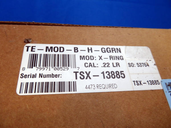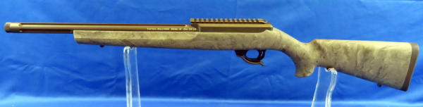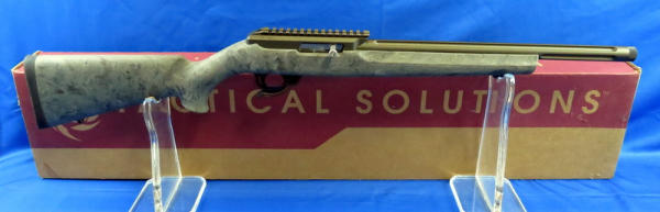 16" fluted barrel w/green finish; rubberized stock; picatinny rail; has been fired but overall like new condition; extremely lightweight; includes original box; uses a Ruger 10/22 removable clip; SN#TSX-13885