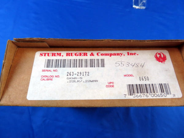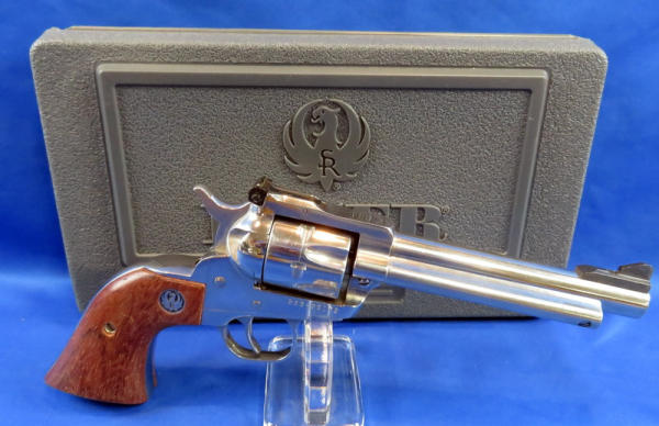 5.5" nickel barrel; has been fired but very nice like new condition; includes both the .22LR & .22 Win Mag cylinders; factory wood grips; factory hard case; SN#263-29172
