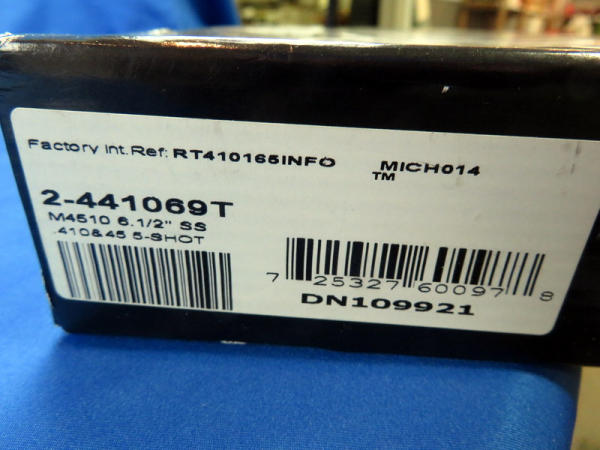 6.5" solid rim Stainless barrel; rubber factory grips; has been fired, but very nice condition; original box; fiber optic front sight; SN#DN109921