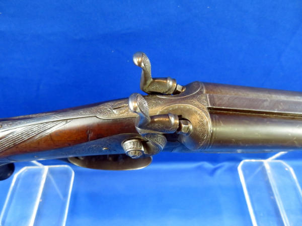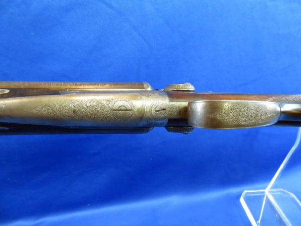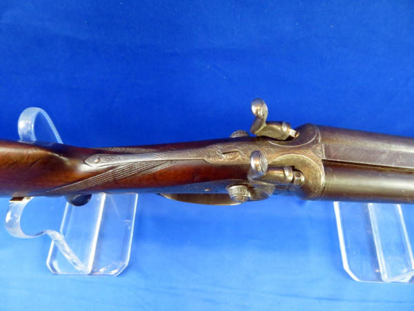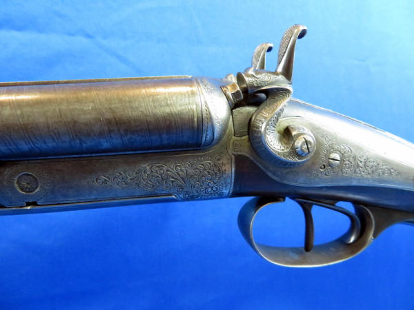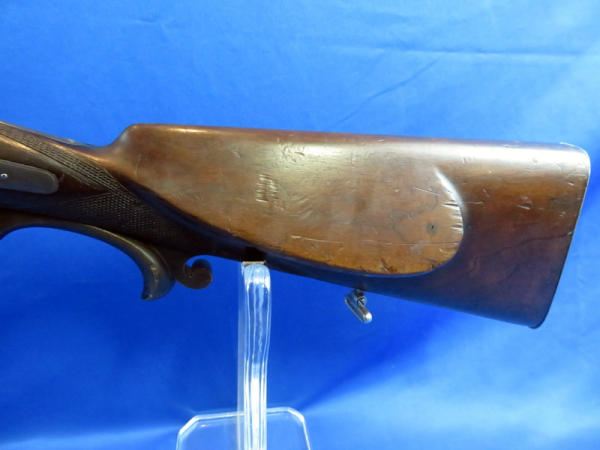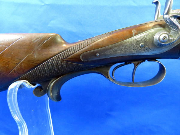 another rare combo firearm! Has horn trigger guard; German made; 28" round Bbl.: highly engraved receiver, hammers & trigger guard; has some dings in the wood; overall a beautiful firearm; two triggers; no SN#