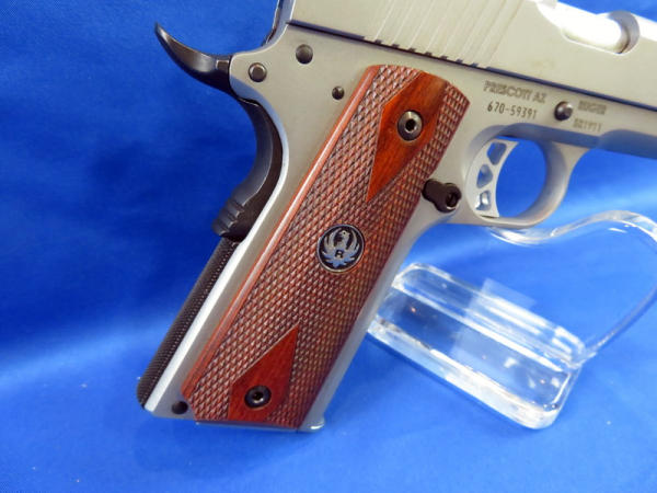 has been shot but like new condition; one clip; night sights; wood grain checkered factory grips; nice gun; SN#670-59391