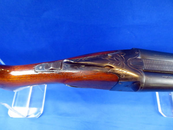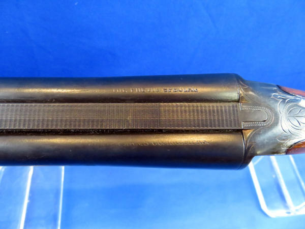 30" Bbl.: break action is a little stiff; two-triggers; has a white diamond inlaid into the stock; overall very nice; factory engraved receiver; CC on both; SN#34515