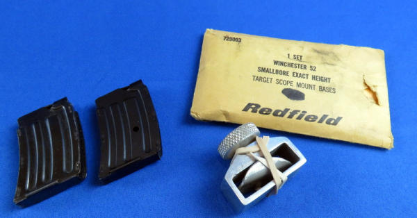 28" heavy Bull Bbl.; made in 1956; micro motion trigger; Bought new in 1956 from Warners Hdw. In Downtown Minneapolis; used in many Target Shooting Competitions; has a single shot adapter and 2 extra clips; original hang tag! Lyman Target Sight; SN#93125C