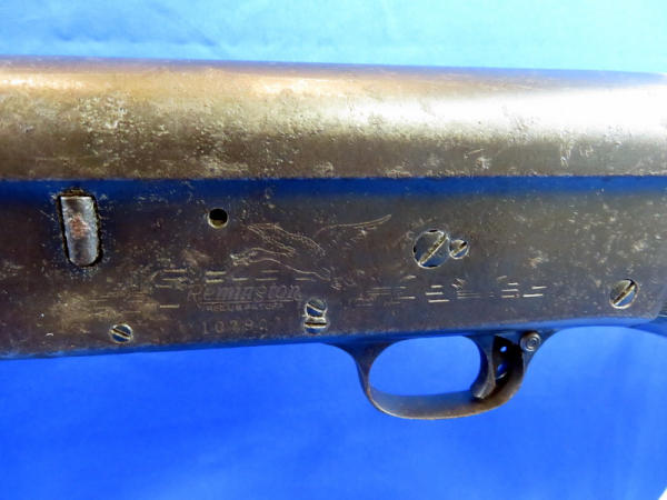 28" vent-ribbed Bbl.; vent is dented on top; overall finish is worn; has spotting & pitting on receiver; 2.75" chamber; MC; SN#1079072