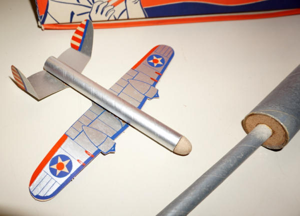 13" long box is near mint; airplane and launcher is mainly cardboard, clean and nice set