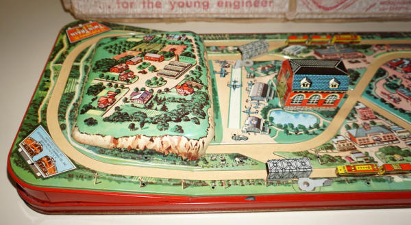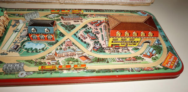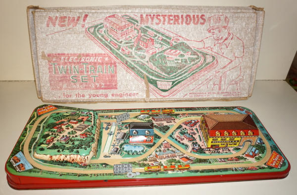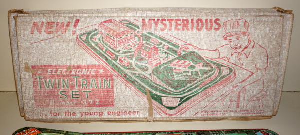 this is the same as lot #54, but looks to be complete, 28" long, did not test, has 2 3pc train sets; box is complete, but heavy wear