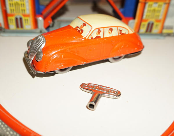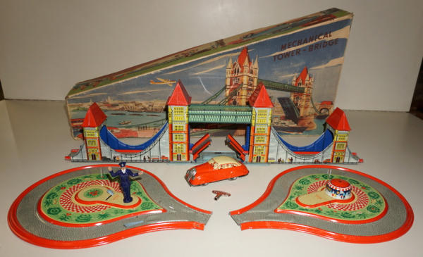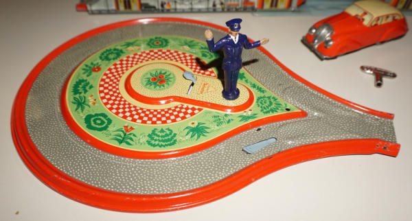 made in Western Germany, all complete with the policeman, beautiful tin-litho, 2pc box is 22" long with some general wear, overall clean and nice