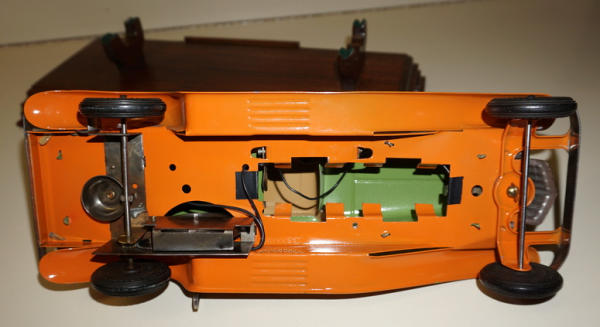 beautiful restoration on a very desirable toy, 15" long, high-quality display stand included, nice piece for a restored toy