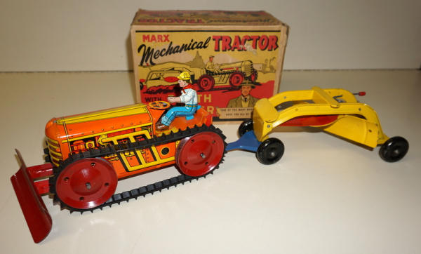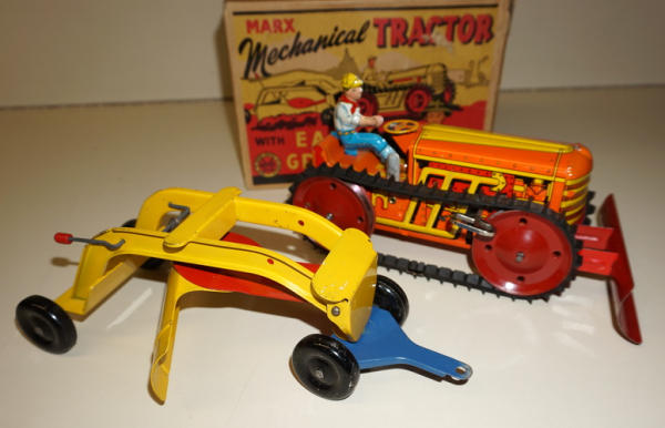 never seen this Marx Set before, toy works, includes the driver & blade too, crawler is 10" long with the blade; box is complete with some general wear and punctures