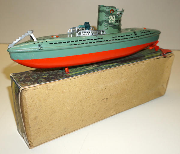 12" long, super clean and nice, believe made by Arnold, but not 100%, 2pc box has super graphics, but some splitting on the edges, bottom box has some damage, but still displays nicely