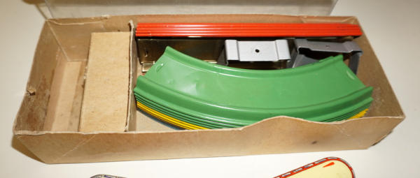 11" long box, box has some general wear, looks to be complete, fairly heavy, includes 16 sections of track