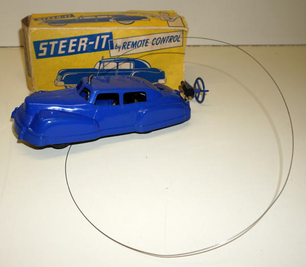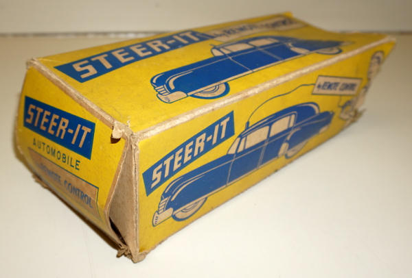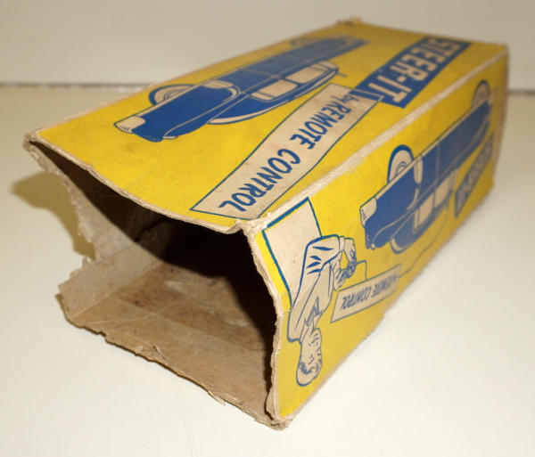 plastic key wind toy, 10" long, box is missing end flaps and has pretty heavy wear