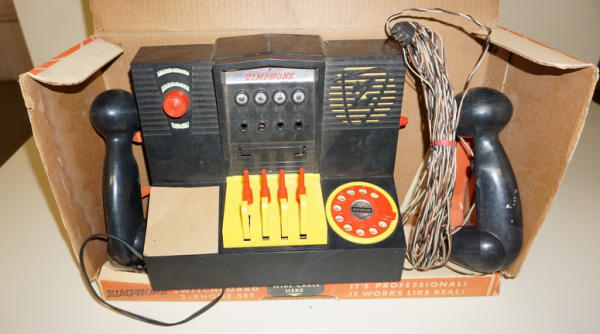 box is 17"x12" and has fairly heavy wear, toy is mostly plastic, did not test, but looks good and complete