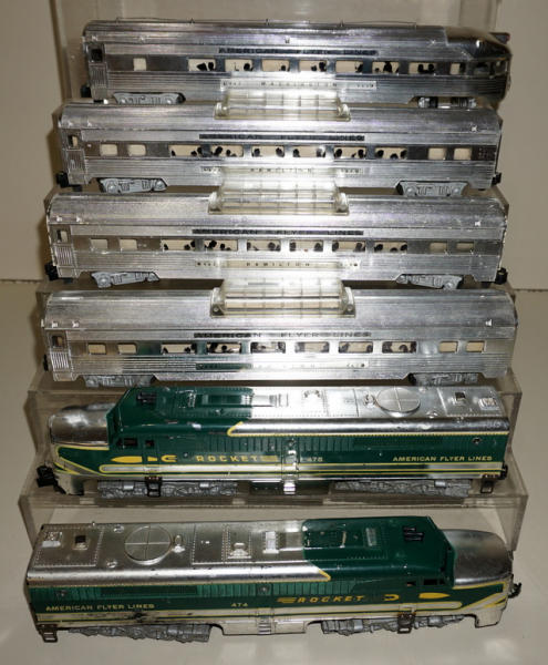 comes with a note that the engine was serviced on 1-13-15 and runs great, locked in forward only, some general wear, but overall a nice and hard to find American Flyer Set