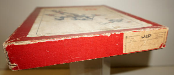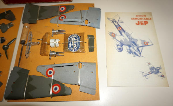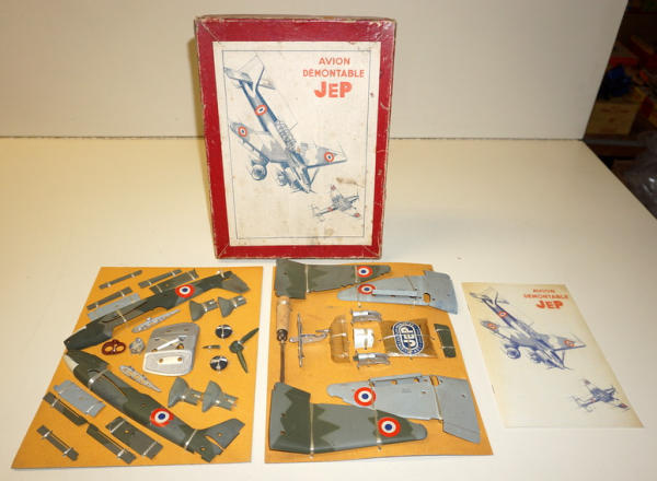 Great piece, box is 8.5"x11", 2 cards that look to be 100% complete and includes instructions too; only downfall I see is the prop is broken, but both pieces are there, box has some general wear, this is a really high-quality French made toy