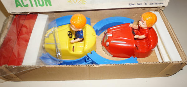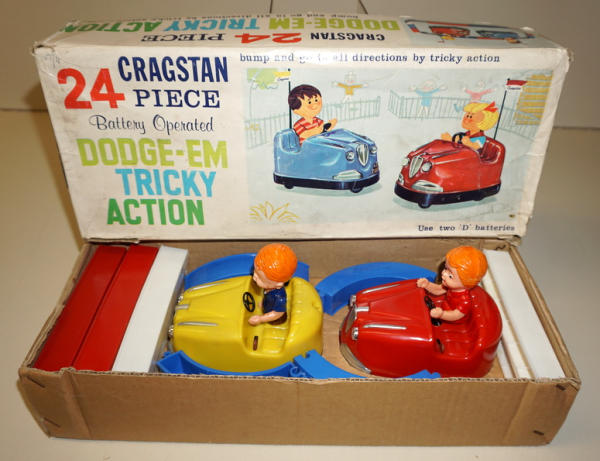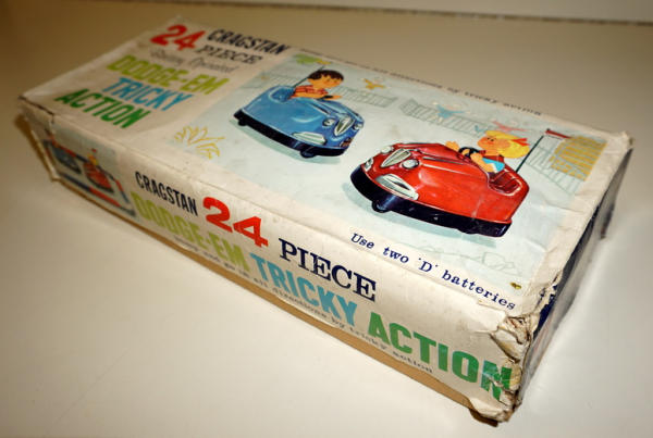 box is 16" long, toys are mainly plastic, look to be complete and pretty well mint, box has pretty heavy wear, but complete