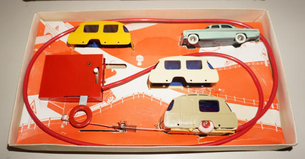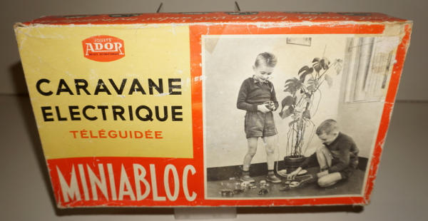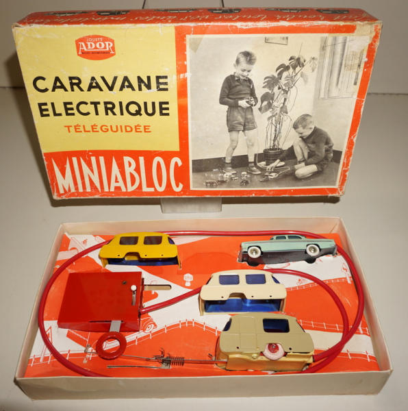 great set made in France, Car is 4.5" long, heavy diecast and near mint; camper is mainly plastic and includes 2 different color camper shells, all with a remote, did not test; box is good with some general wear, unique set