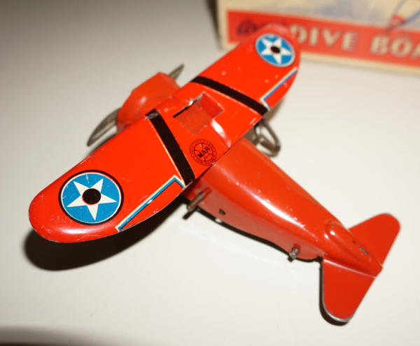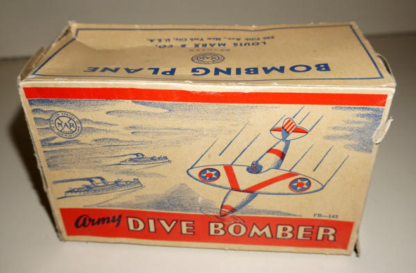 5"x6" plane, Windup works, box is nice with some damage to the ends; Box looks big for this plane, so I'm not 100% sure it is a correct match, but it was the way we found it in Lee's collection