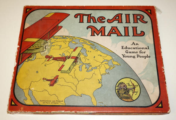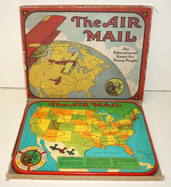 Tin-litho board w/ small airplanes included, 12"x15" box, nice graphic box with general wear, bottom portion of the box is missing a side; game itself is pretty clean and nice
