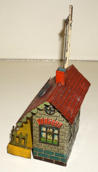 9" tall, 10" wide, very light & delicate tin, probably from early 1900's, some general wear, but still a nice & early piece