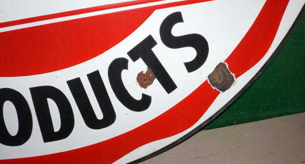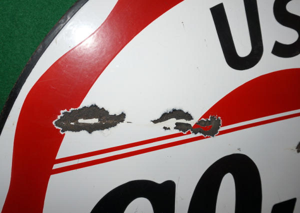 a few large chips on each side and a couple of nail holes, great color and gloss, rates 7.5 condition or better