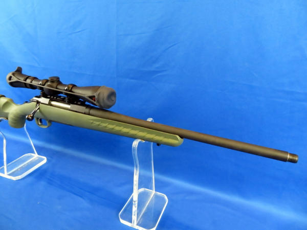 18.5" bbl.; smooth action; has been fired but like new condition; Redfield Revolution 3-9x40 scope is very clear; removable clip; cheek pad on stock; green synthetic stock; original box; barrel is thread on end but it is missing the muzzle extension; SN#695-22430