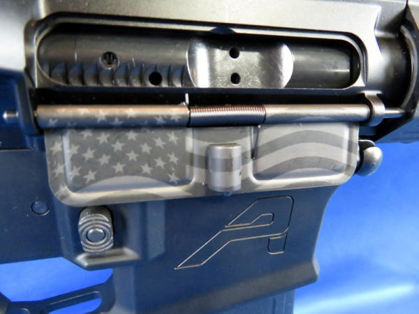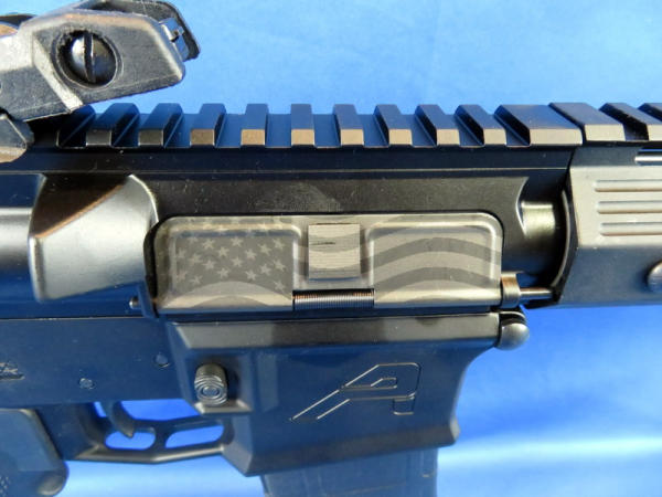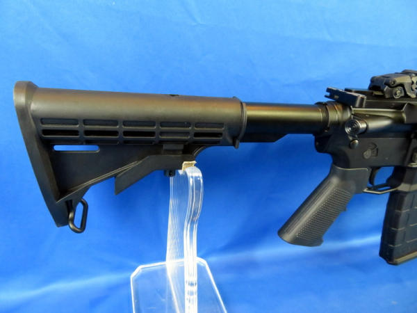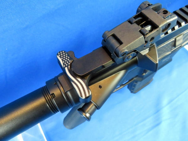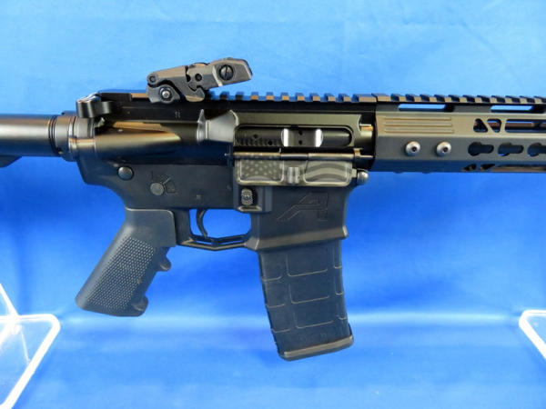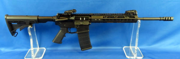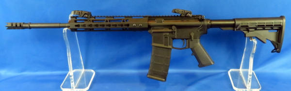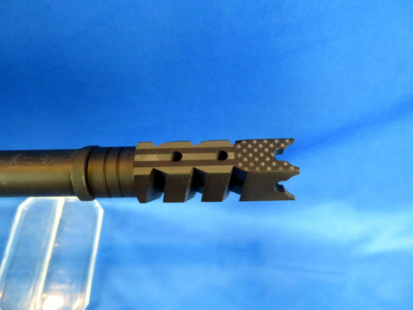 16" Bbl. w/2" muzzle break; brand new and unfired; extendable stock; has flag graphics on receiver & muzzle; flip up sights; sharp looking firearm! SN#M4-0264752