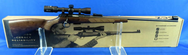 24.5" Bbl.; appears new & unfired; Burris Droptine 2-7x35 scope is clear; removable clip; original box; SN#C807253