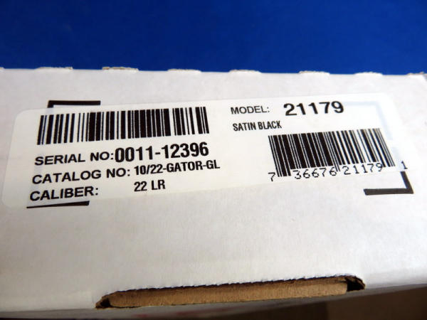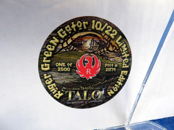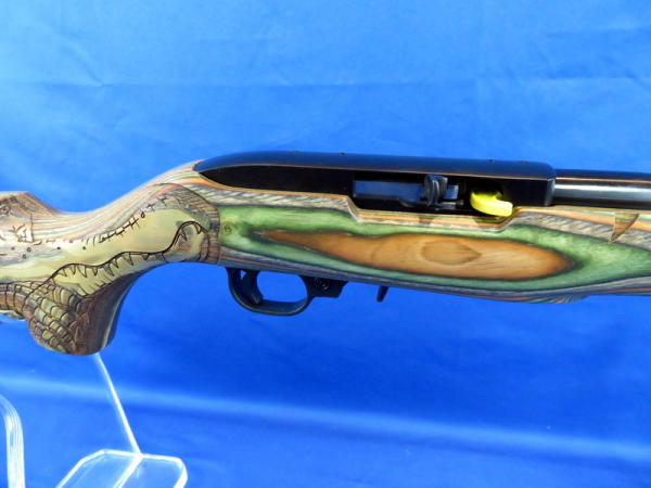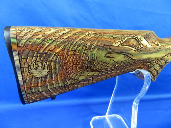 18.5" Bbl.; highly engraved wood grain laminate stock of Gator head; mint & unfired; SN#001112396