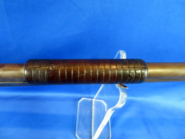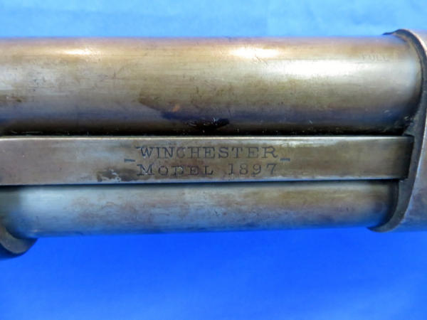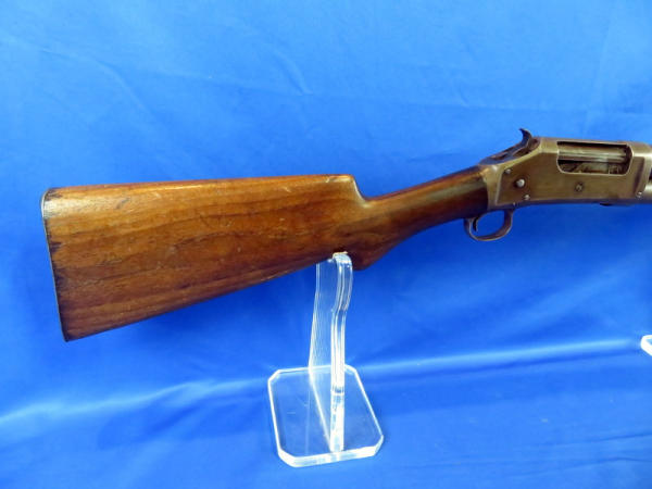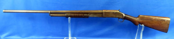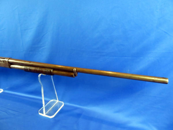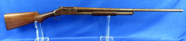 early model w/3-screw forearm; 30" Bbl.; bluing is very thin; forearm has cracks; gun has quite a bit of wear; action catches about have way through pump; FC; SN#L34302