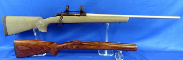 24" stainless barrel; smooth action; has Hogue rubberized stock; includes original wood stock; scope rings; SN#G2362771