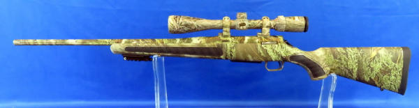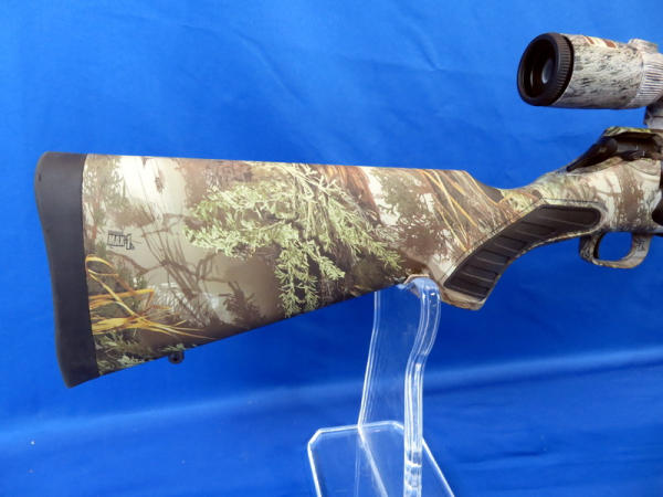 all Camo! 22" fluted barrel; synthetic stock w/Advantage Max-1 camo; looks near mint; Nikon scope is nice and clear; removable clip; box; nice looking set-up; SN#U018860