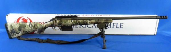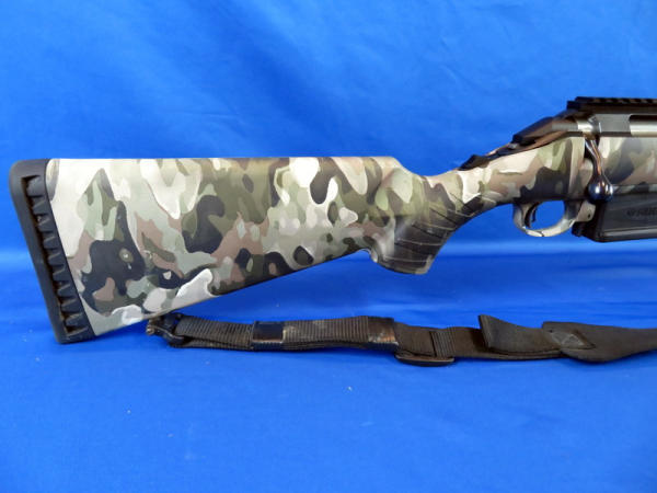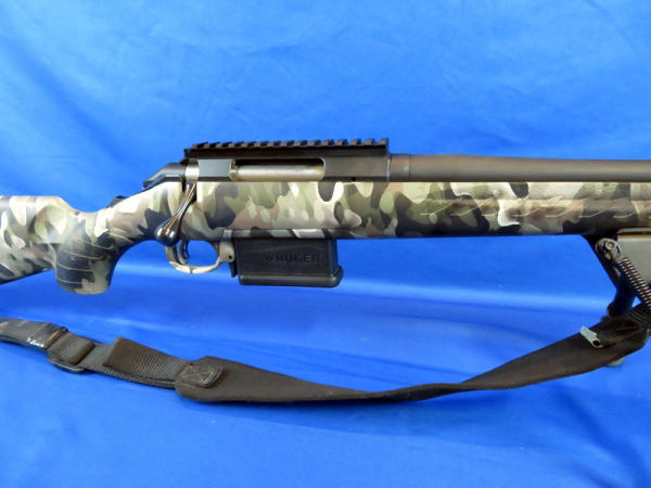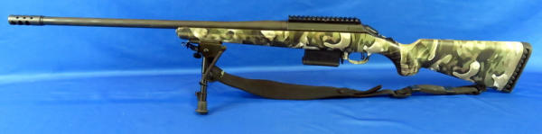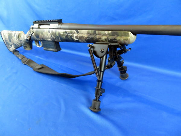 Camo; 22" flat finish barrel w/2" muzzle break; sling; picatinny rail; bi-pod; removable clip; box; nice set-up; SN#690533092