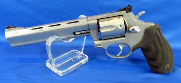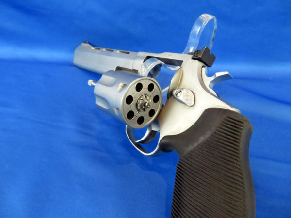 6.5" vent-ribbed barrel; rubber grips; red ramp front sight; 7-shot swing out cylinder; has some scratches from use; very heavy; SN#598117
