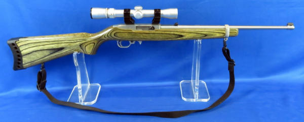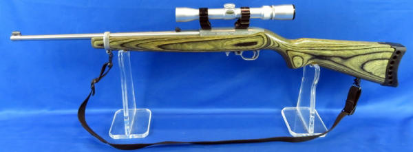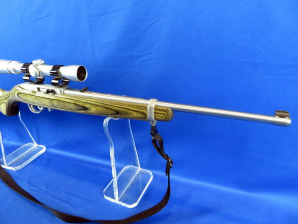 18.5" stainless barrel; wood grain laminate stock; NO clip; sling; Weaver Classic scope is clear; SN#237-93808