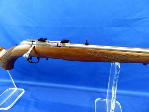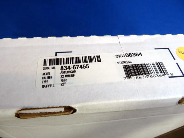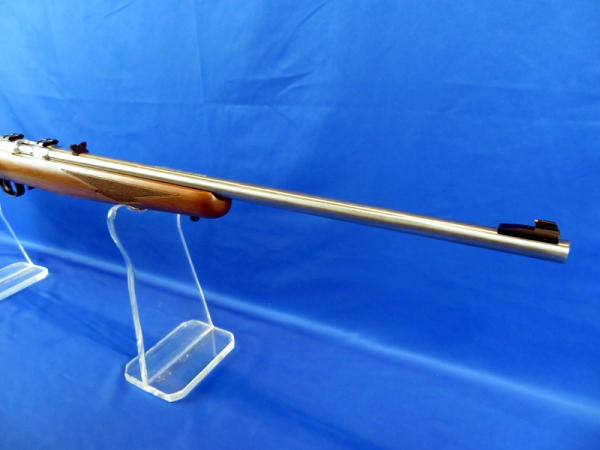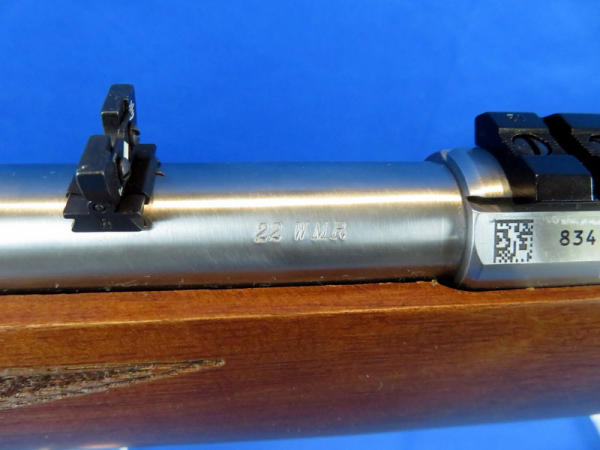 22" barrel; mint & unfired; great look to it; has some staining on the left side of the stock; scope ring mounts; removable clip; SN#834-67455