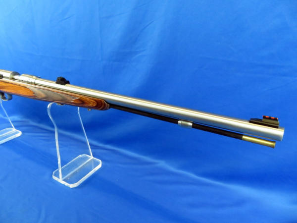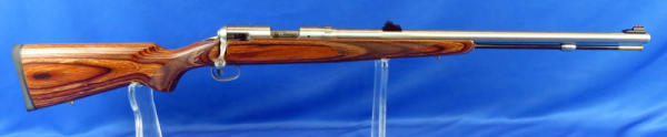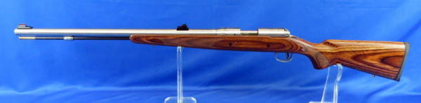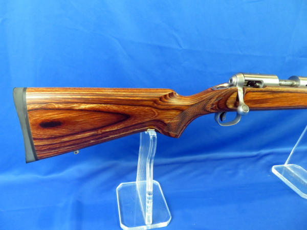24" stainless barrel; wood grain laminate stock; smooth action; SN#M035493; NO FFL transfer required