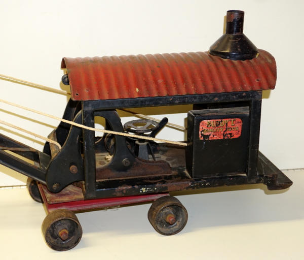 pretty good original, paint is about 70%, decals have flaked off, 29" long, 13" tall, hard to find early Buddy L toy