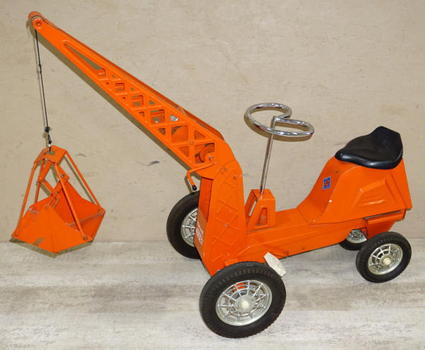 very cool toy, made in France, pressed steel, heavy clam bucket, nice original with very little play wear