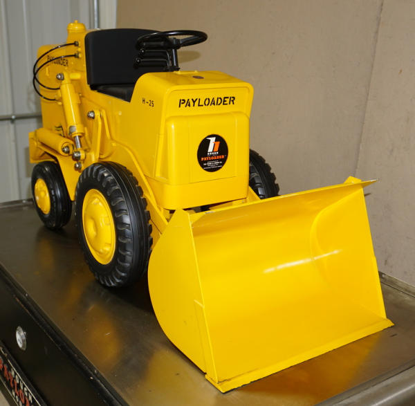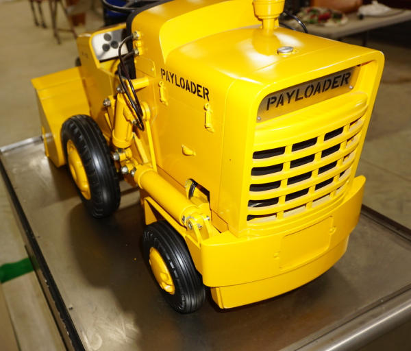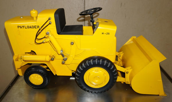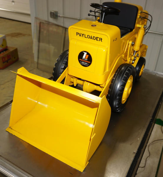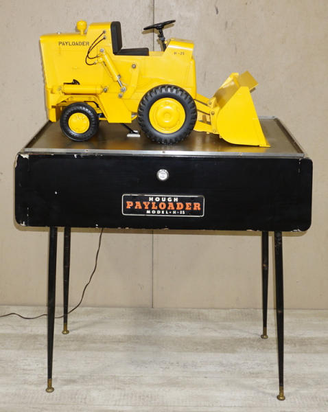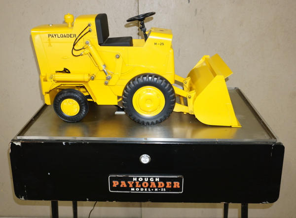 This is one of the highlights of the weekend! This is a fully hydraulic, working steel model of an early Hough payloader! This came out of the corporate office of Hough! On the original stand, loader is about 30" long and 16" high; has a button that will run a 2-minute cycle of the loader going up & down! case shows some wear, includes a showcase surround, the loader itself is near mint; no shipping local pickup only