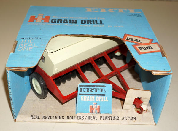 metal hopper, toy is near mint, box is nice, maybe lightly faded, box rates 8.5 condition